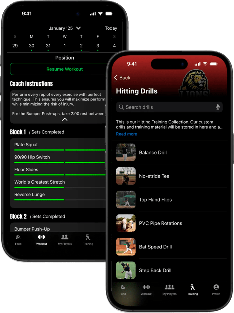 Drills cover offense, defense, and every position on the diamond. Each includes interactive vide instruction and rep-counting tools so players can track their progress in real time.
