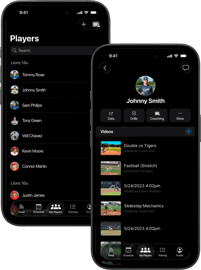 Upload videos and use playback controls, on-screen drawing tools, and frame-by-frame scrubbing. Compare player clips side-by-side with MLB pros to visualize progress and fine-tune mechanics.